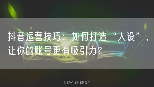 通过以上几个方面的努力,你可以打造出具有吸引力的抖音账号人设,吸引更多粉丝关注,提升账号曝光率和影响力。当然,抖音运营是一个长期的过程,需要不断学习和探索,才能取得更好的效果。希望本文的介绍能对你有所启发,祝你在抖音运营中取得成功。